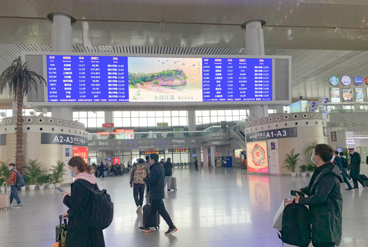 五一期间,两大高铁站点客流更是亮眼,南京南站累计到发旅客超过225万人次,上海站超过167万人次。巨大的高铁客流、精准的目标旅客、有效的信息传播,高铁站LED旅客信息大屏已成为“水韵江苏”面向全国商旅人群的有效展示窗口。