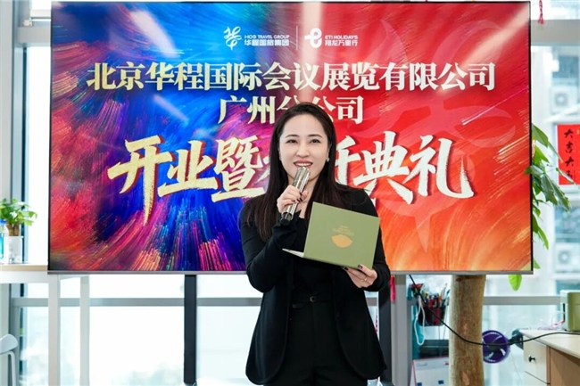 华程会展广州分公司总经理谭倩宇Katherine作为东道主率先致辞,她坦言:“今天到场的许多面孔,都是我相识十几年、曾经并肩作战过的老朋友。未来,我将带领一支充满活力的团队,把我们过去磨合出的高效工作模式,与华程国旅集团的全球资源、创新理念进行深度融合。这意味着,我们的客户朋友们将迎来一位更懂需求、更具强大资源支撑与高效交付能力的老搭档。”